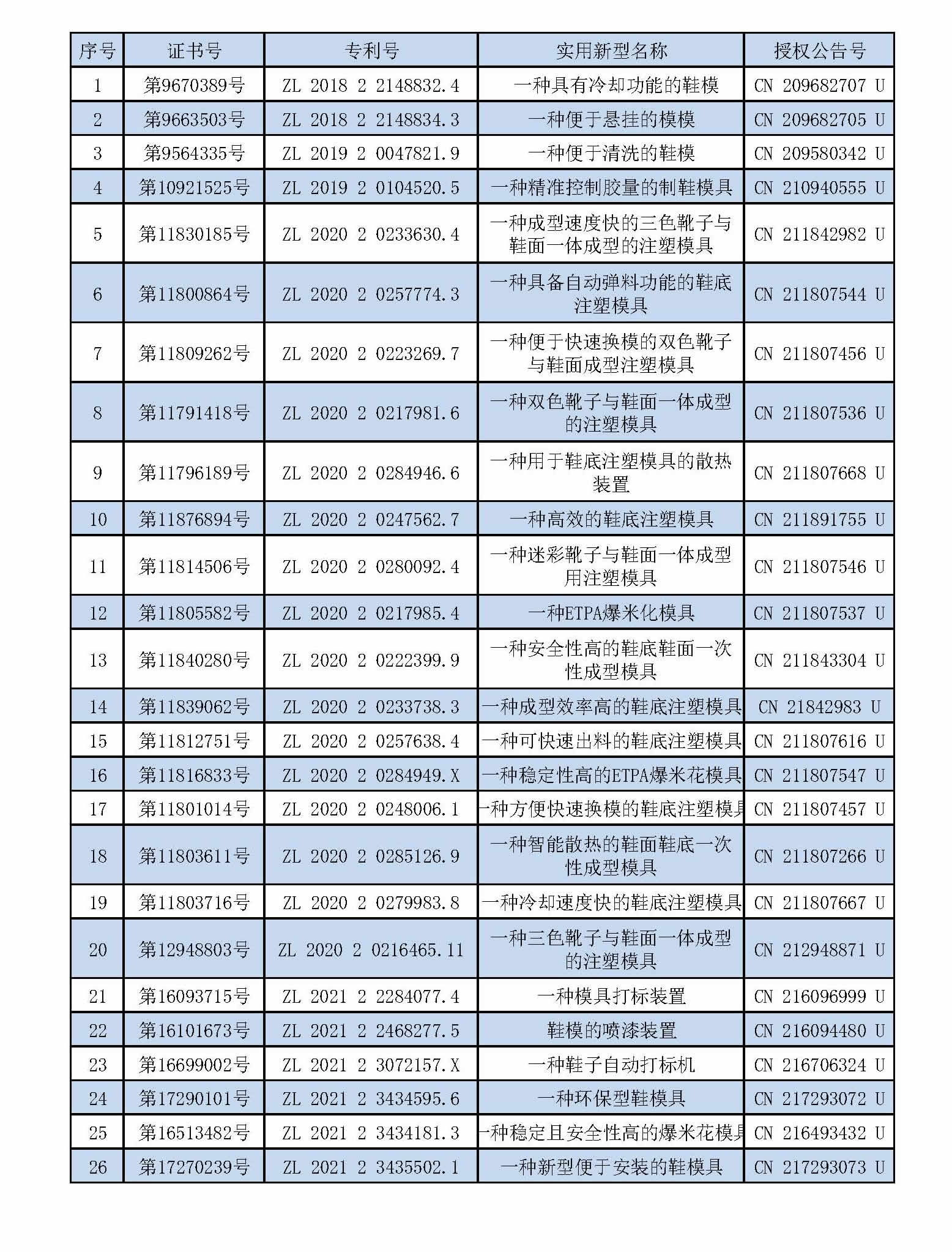 公司自成立以來(lái),始終堅(jiān)持以客戶需求為導(dǎo)向,依靠科技求發(fā)展,高度重視并且持續(xù)加大研發(fā)投入,組建技術(shù)中心,引進(jìn)先進(jìn)的技術(shù)開(kāi)發(fā)設(shè)備:CNC高精度數(shù)控機(jī)床、光固化3D打印機(jī)設(shè)備、進(jìn)口平面大銑床,精密平面雕刻機(jī),單/雙頭放電機(jī)等各類高精度設(shè)備等近200多臺(tái)。通過(guò)多年的努力,目前公司已取得20項(xiàng)專利,并實(shí)現(xiàn)了專利成果轉(zhuǎn)化,為公司開(kāi)拓市場(chǎng),提高核心競(jìng)爭(zhēng)力,提供了強(qiáng)有力的科技支撐。 公司以獨(dú)特的生產(chǎn)工藝和雄厚的開(kāi)發(fā)力量,贏得了廣大制鞋企業(yè)的支持和信賴,產(chǎn)品目前主要銷往莆田、泉州、廈門、廣東省等地方,主要合作伙伴有李寧、迪卡儂、巴拉巴拉、銳步、斯凱奇、K.SWISS等世界知名品牌。協(xié)信以服務(wù)現(xiàn)有客戶、研發(fā)新型鞋類技術(shù)或非鞋類產(chǎn)品為主,致力于給所有中外客戶提供專業(yè)的品質(zhì)、高效的交期和一流的服務(wù)!